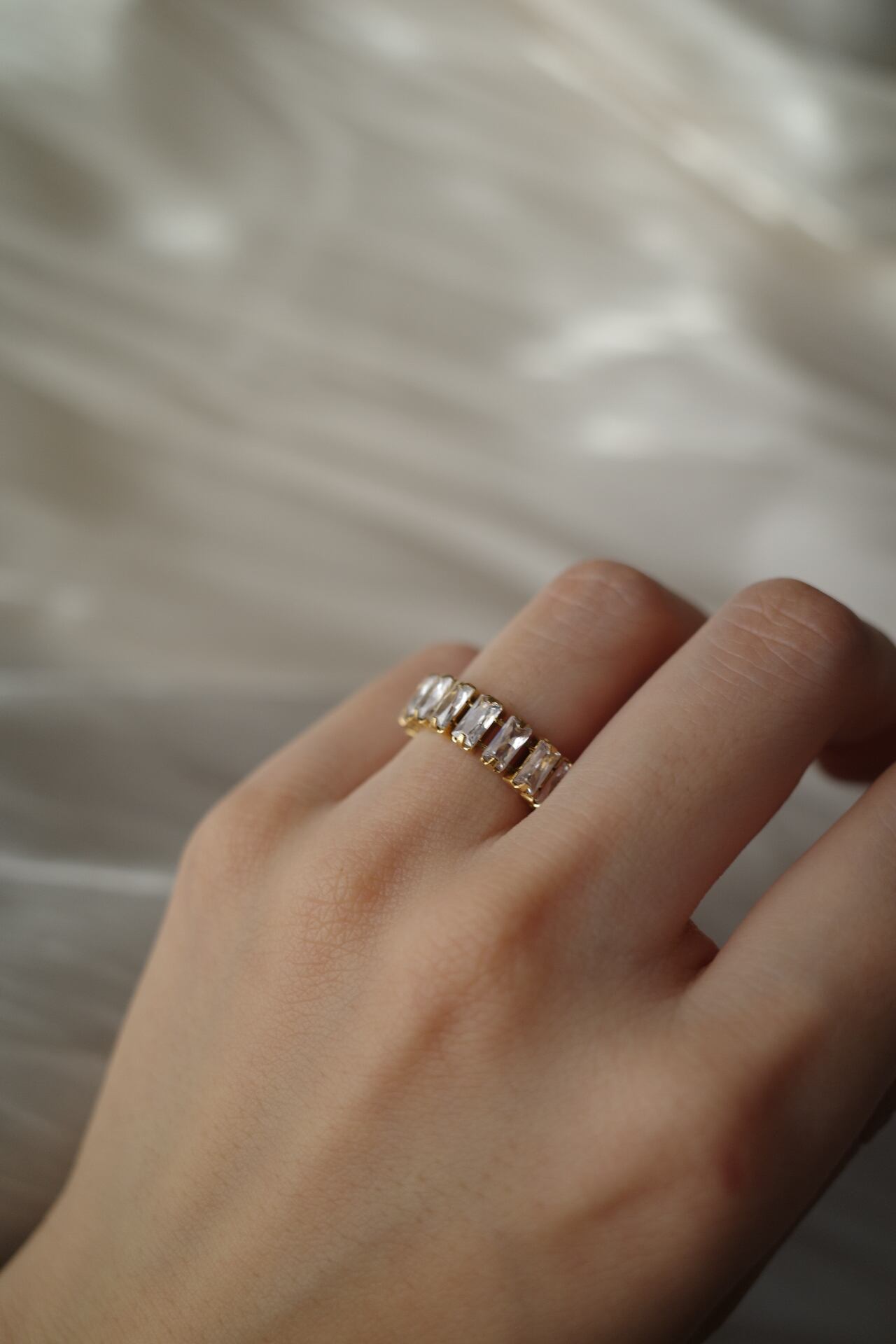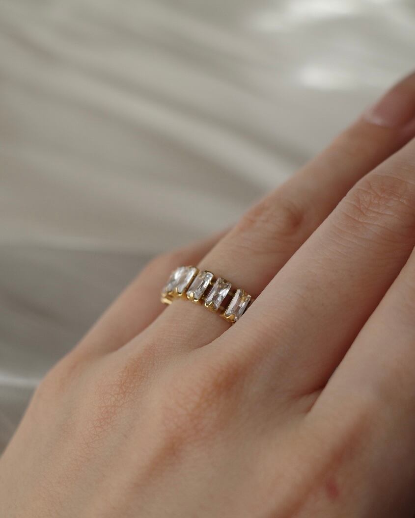 すっきりとしたフォルムに、透明感のある輝きを添えたリング。