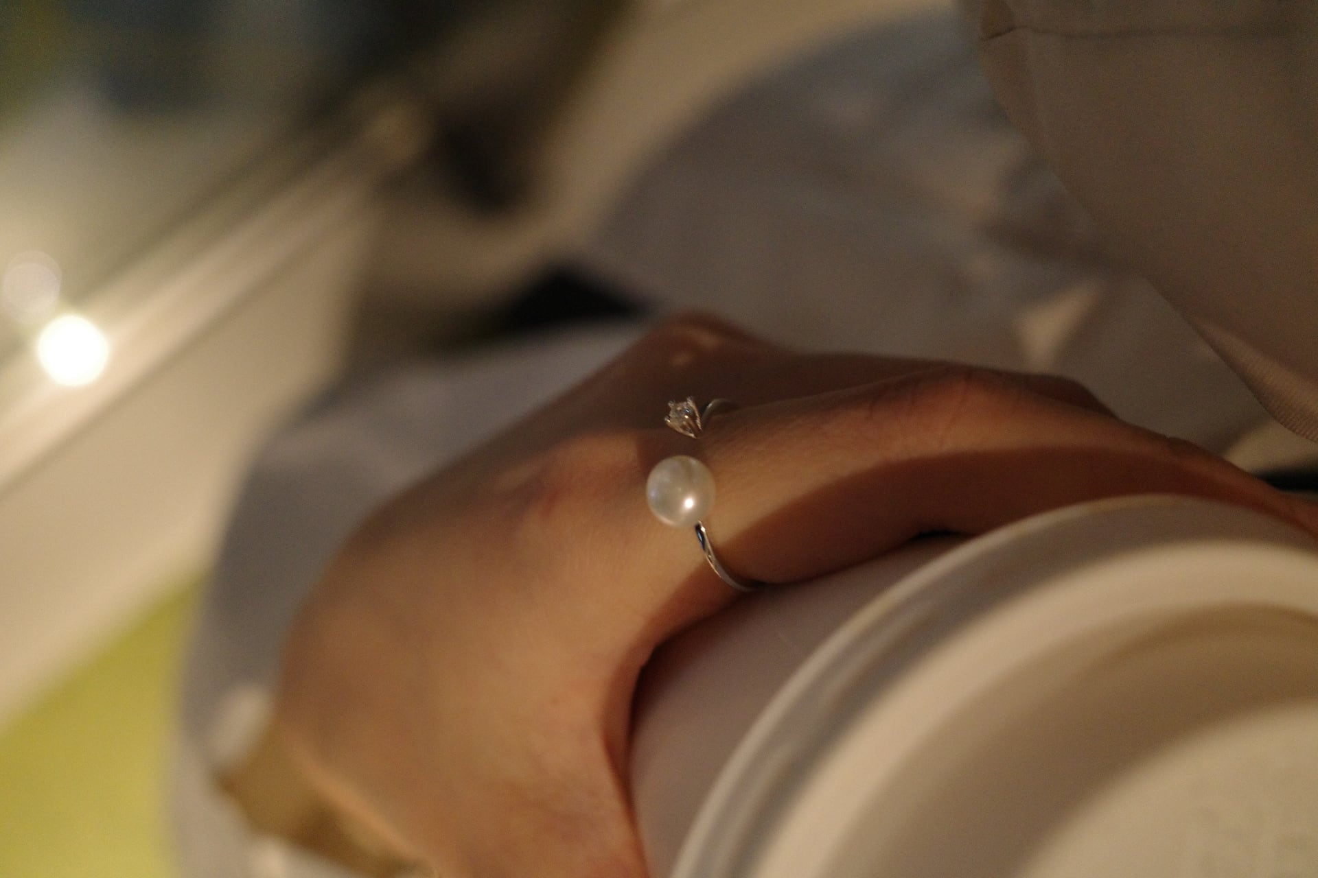 ひと粒のパールが静かに存在感を放つリング。